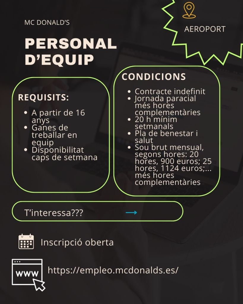 📲 Demana cita per WhatsApp:674 643 311 📧 Si cerques personal, envia’ns la teva oferta:jxamena@llucmajor.org