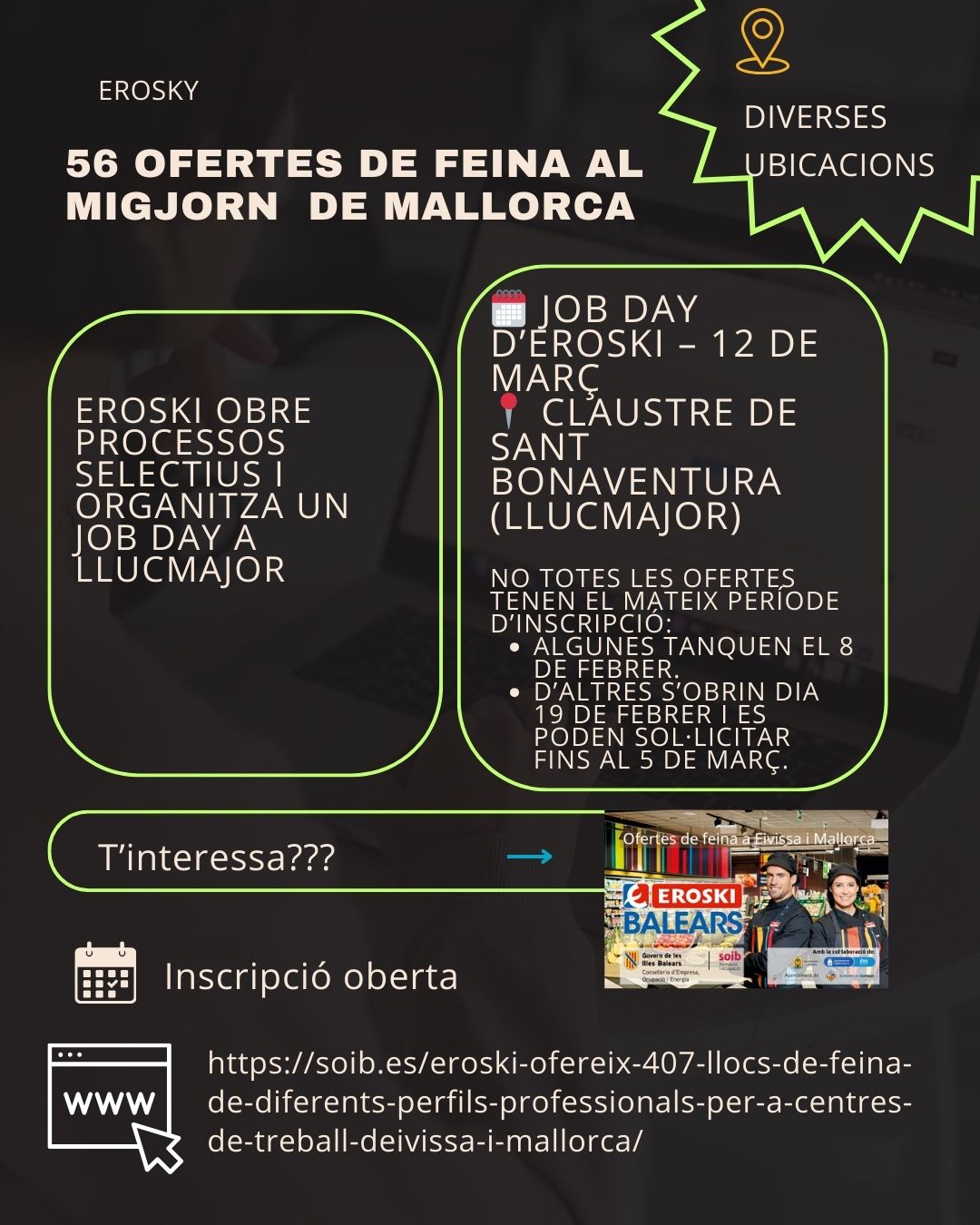 Eroski obre processos selectius i organitza un Job Day a Llucmajor