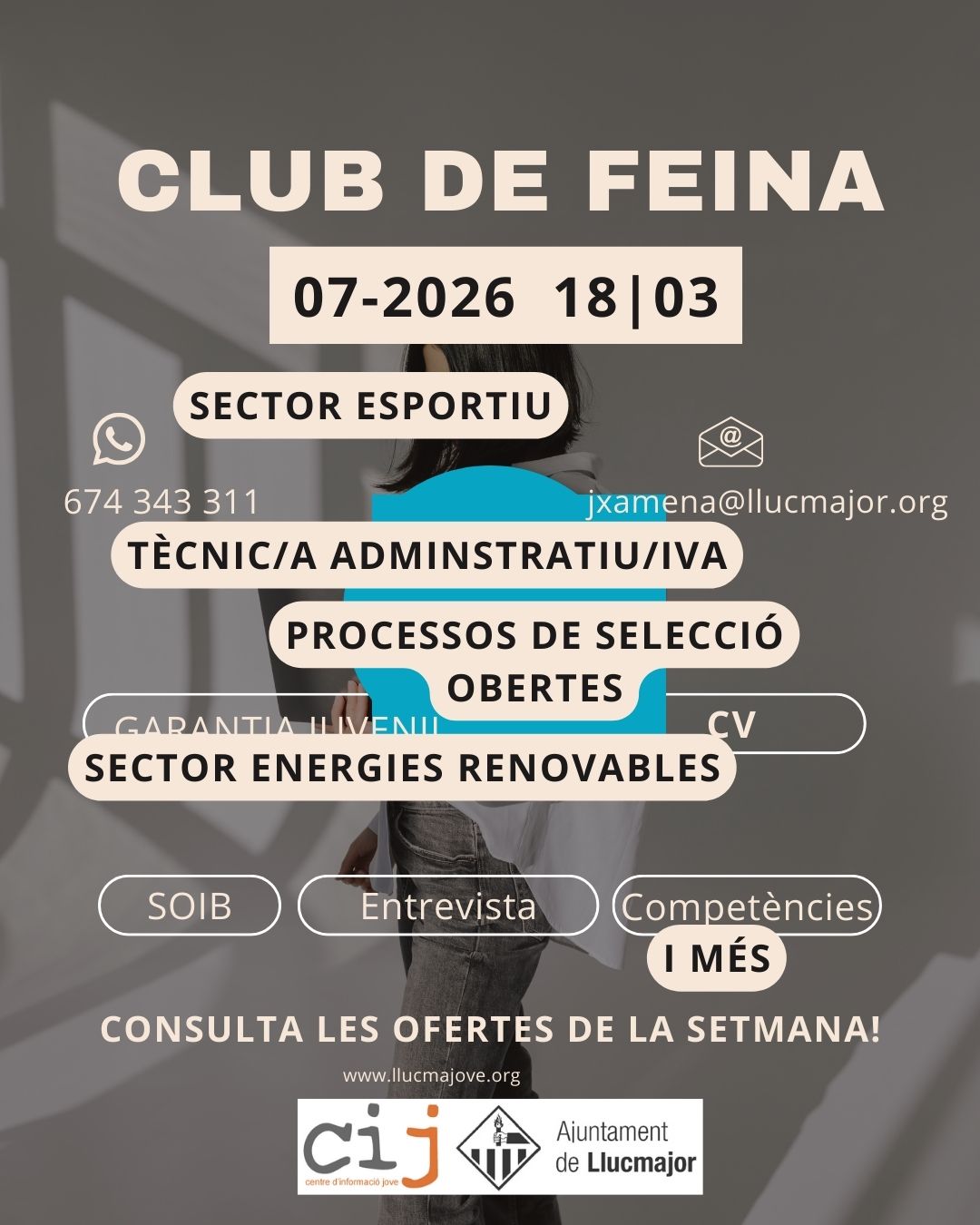 Ja tens disponible el nou recull d’ofertes del Club de Feina de Llucmajove! Aquesta setmana incorporam vacants de diferents sectors, processos de selecció SOIB i cursos formatius amb borsa de treball.