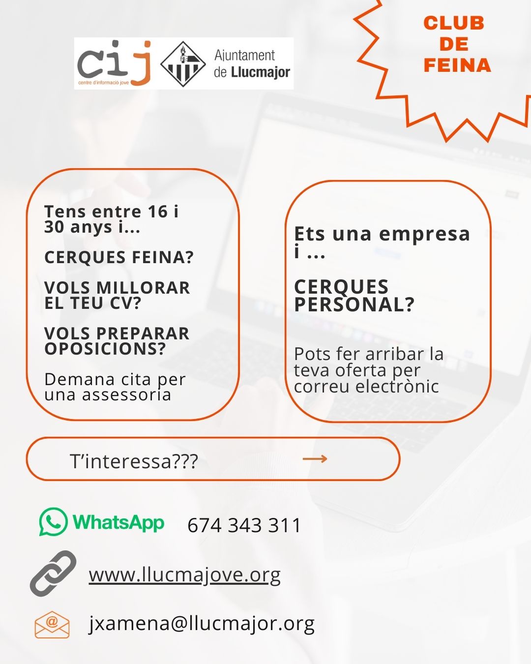 🔥 No deixeu passar aquesta oportunitat! Per ajuda amb la inscripció o dubtes, passa pel CIJ Llucmajor o escriu-nos. 💛
