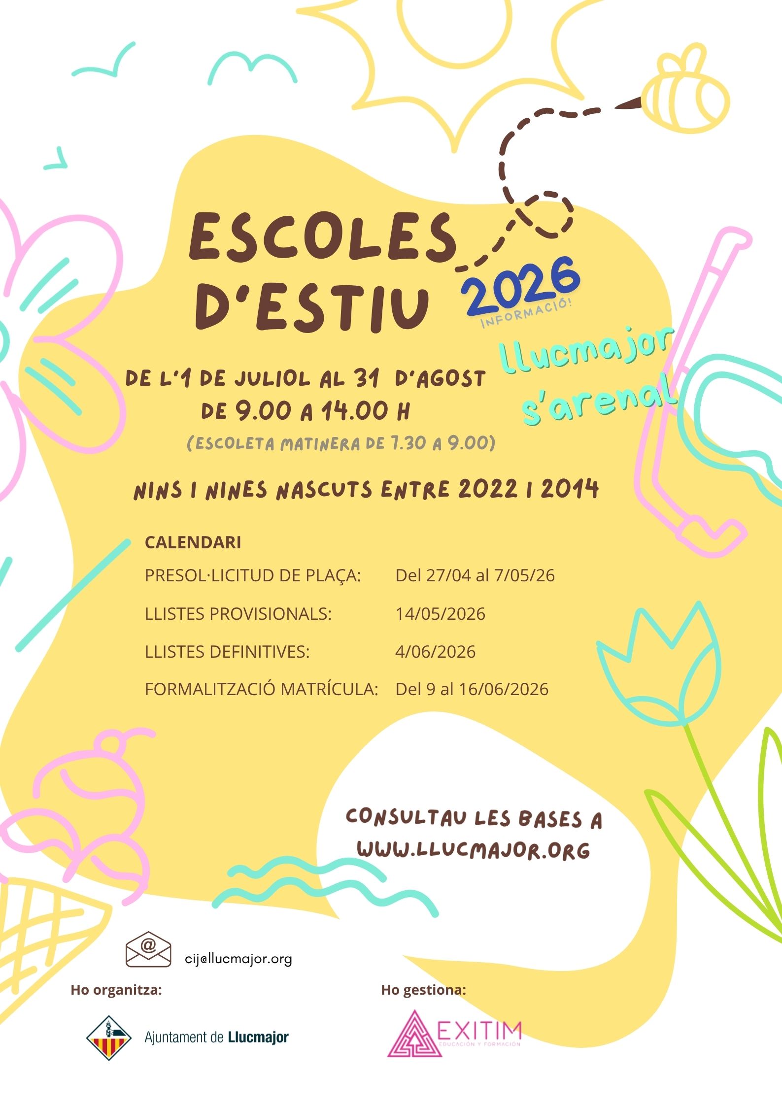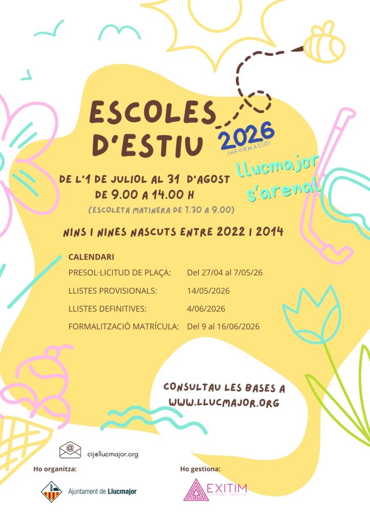 El termini per inscriure’s és del 18 al 31 de març, ambdues dates incloses. Com sempre, el procés s’ha de fer de manera telemàtica a través del web oficial del Govern de les Illes Balears.