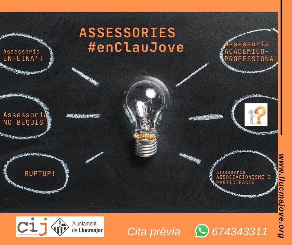 Disposam d’un servei d’assessories per a joves. Sol·licitar cita prèvia per whatsapp al 674343311