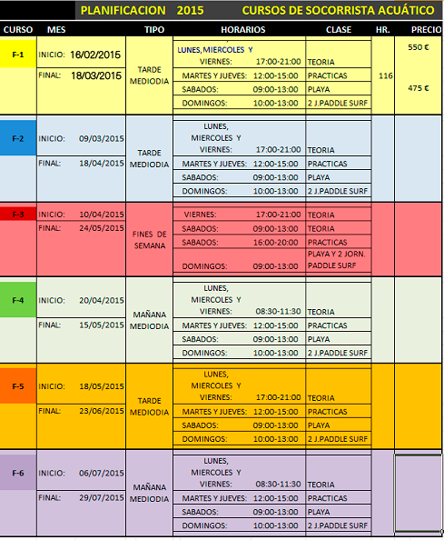 PROGRAMA CURSOS 2015 ESPORTS 85 (Socorrista de Piscines, Socorrista Aquàtic, Desfibrilador)