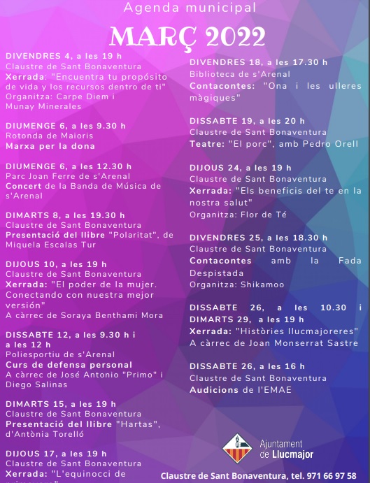 Agenda d’actes MARÇ Publicat el 24 febrer 2022 per #enClauJove Ajuntament de Llucmajor Aquí us la podeu descarregar en PDF 👇👇 agenda-marc-2022Baixa Comparteix això: Feu clic per compartir a X (S'obre en una nova finestra) X Feu clic per compartir al Facebook (S'obre en una nova finestra) Facebook M'agrada S'està carregant... Relacionats