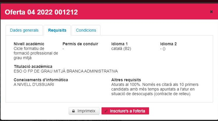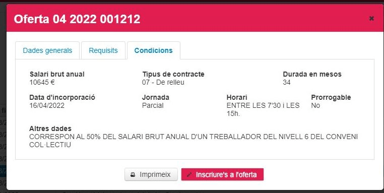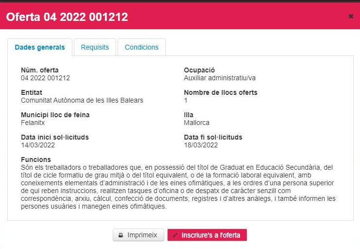Núm. oferta 04 2022 001212 Convocatòria ofertes públiques SOIB