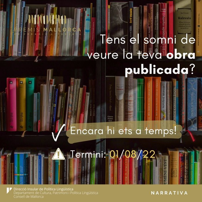 Les obres s’han d’enviar en format PDF de com a màxim 5 MB (excepte les obres infantils il·lustrades, que poden pesar fins a 20 MB), per mitjà dels enllaços de les cinc categories dels Premis Mallorca de Creació Literària 2022 habilitats en l’enllaç que trobareu al final.