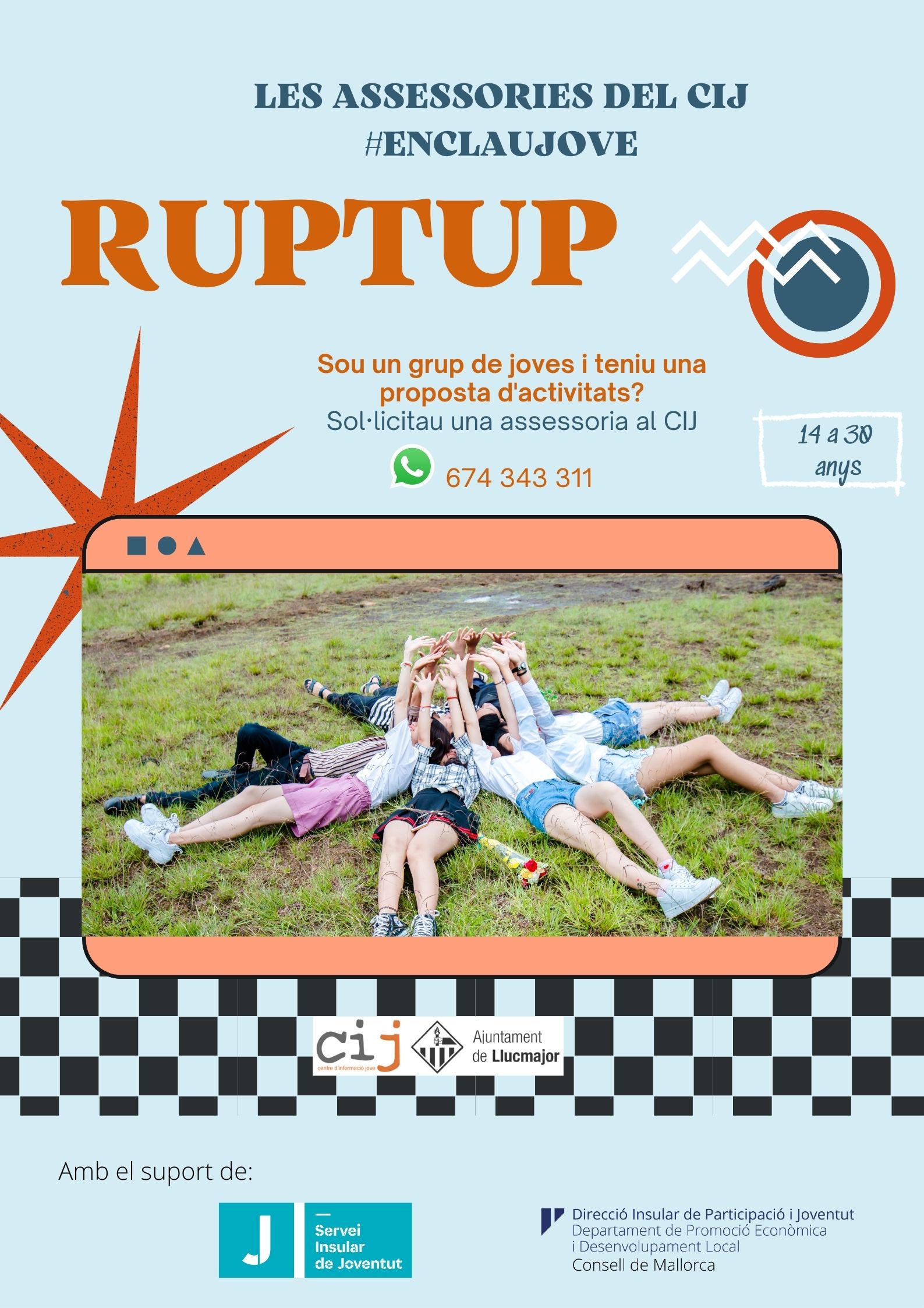 - Assessoria Ruptup: sou un grup de joves i teniu una proposta per dur a terme alguna iniciativa? Sol·licitau una assessoria! (14-30 anys)