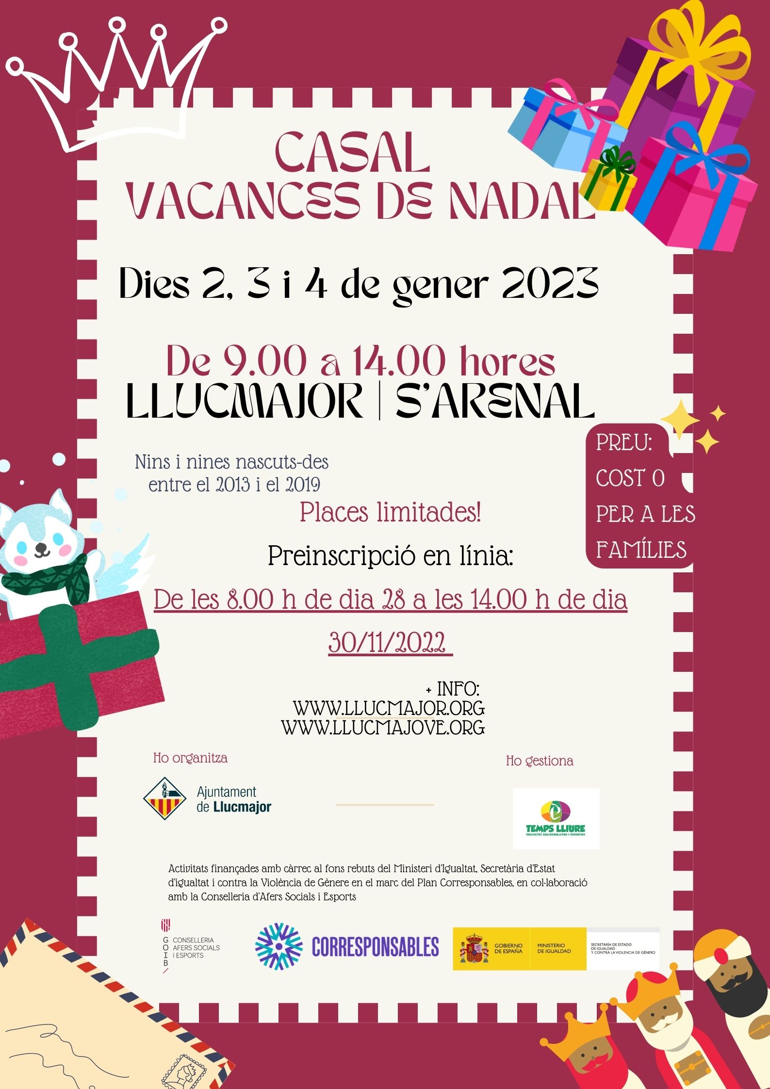 Novetat ‼‼ Enguany l’Ajuntament de Llucmajor ha organitzat una escoleta de lleure infantil en el període vacances escolars de Nadal