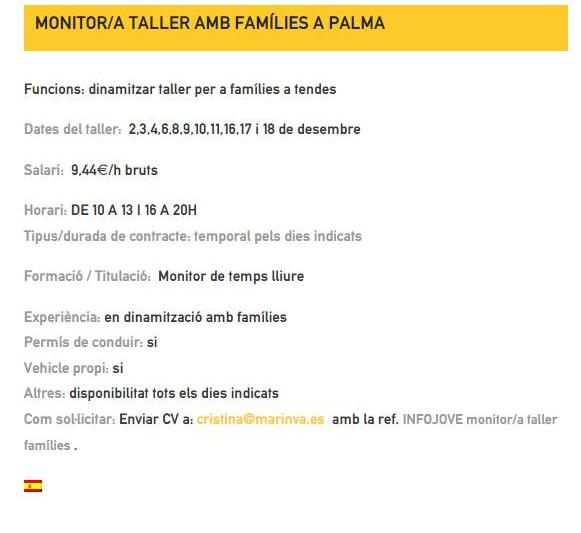 Oferta de feina puntual: monitor-a Publicat el 22 Novembre 2022 per #enClauJove Ajuntament de Llucmajor MONITOR/A TALLER AMB FAMÍLIES A PALMA | InfoJove (jovesilles.net) Comparteix això: Feu clic per compartir a X (S'obre en una nova finestra) X Feu clic per compartir al Facebook (S'obre en una nova finestra) Facebook M'agrada S'està carregant... Relacionats