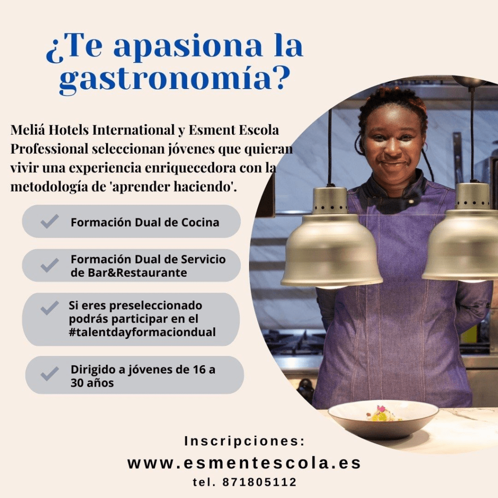🍽🍴🥄🥢Oferta formació dual hosteleria 2023 EsmentEscola & MeliaHotels per a joves de 16 a 30 anys