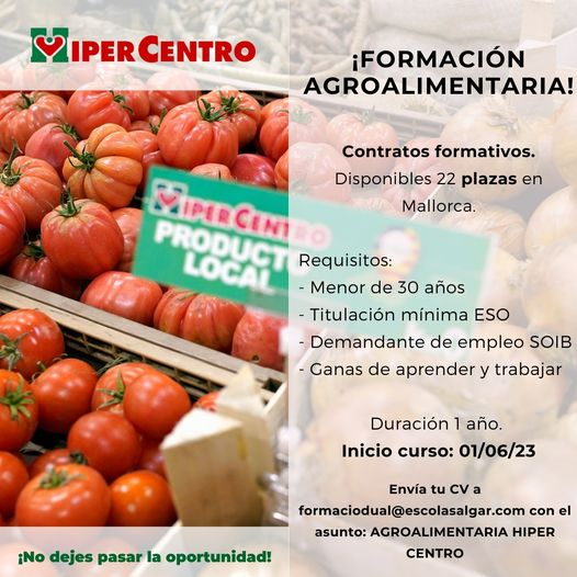 La millor forma és posant-hi les mans, per això,la cadena Hiper Centro juntament amb Escola S’algar, han posat en marxa uns contractes formatius en agroalimentària! No badis, el curs comença l’1 de juny.