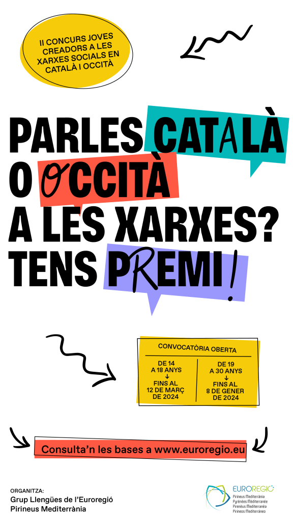 Per segon any consecutiu, l’Euroregió Pirineus Mediterrània promou un concurs per a joves creadors a les xarxes socials en català i occità, enguany amb la denominació CREA OCCAT.