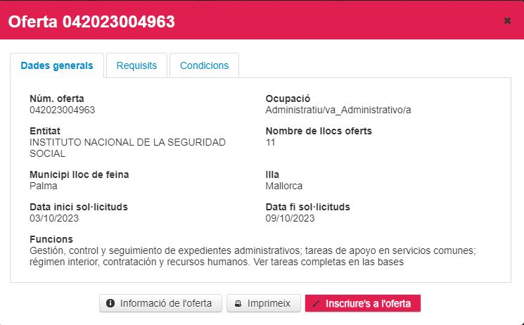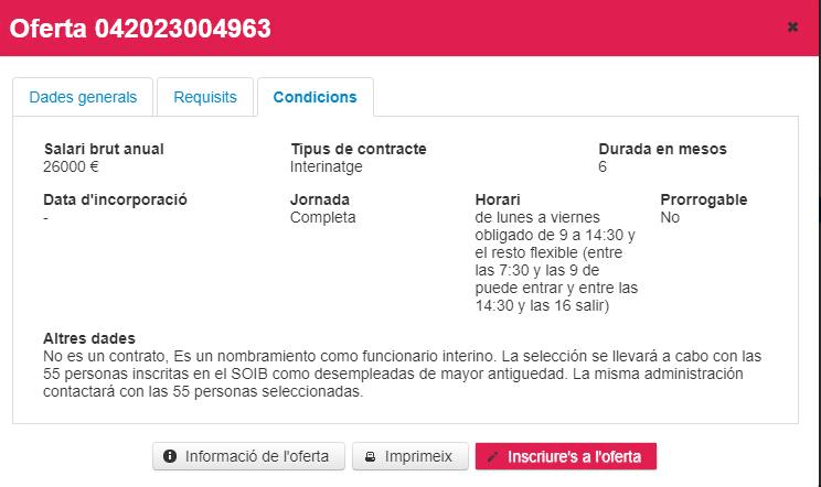 Entra al següent enllaç: Cercador d’ofertes públiques SOIB