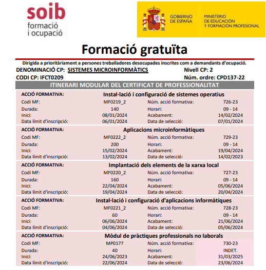 L’Acadèmia Einstein ofereix, a partir del mes de gener, un certificat de professionalitat de SISTEMES MICROINFORMÀTICS. És una formació gratuïta dirigida a prioritàriament a persones treballadores desocupades inscrites com a demandants d’ocupació.