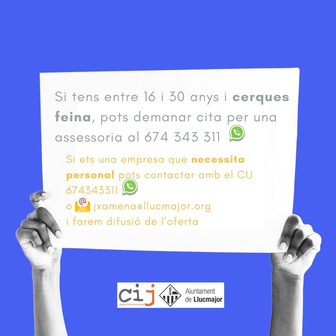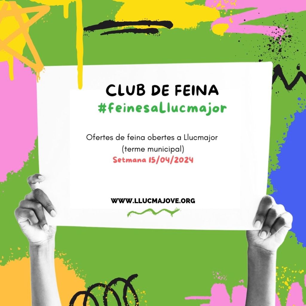 Club de feina #feinesaLlucmajor Publicat el 16 Abril 2024 per #enClauJove Ajuntament de Llucmajor Setmana 15/04/2024 Comparteix això: Feu clic per compartir a X (S'obre en una nova finestra) X Feu clic per compartir al Facebook (S'obre en una nova finestra) Facebook M'agrada S'està carregant... Relacionats
