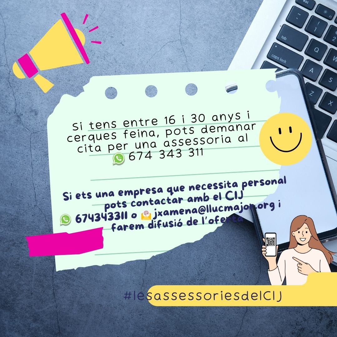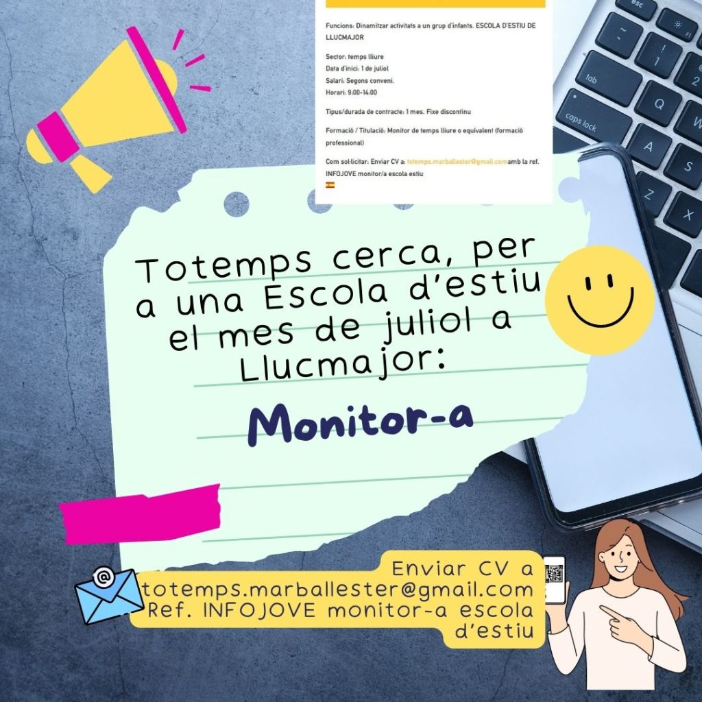 Tota la informació a:https://feina.jovesilles.net/es/monitor-a-de-tiempo-libre-en-llucmajor/