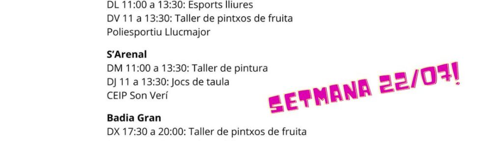 🗓️ Dilluns 22- 11.00 h |Llucmajor: ESPORTS LLIURES