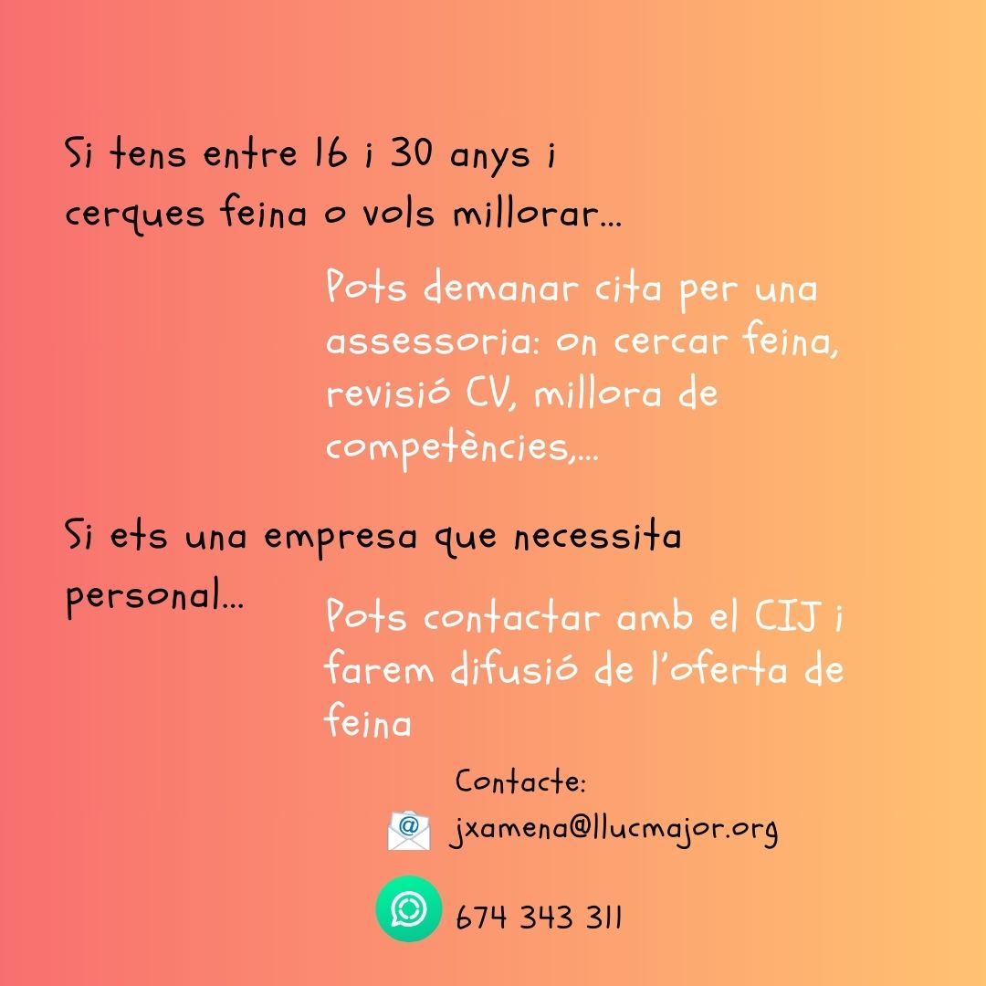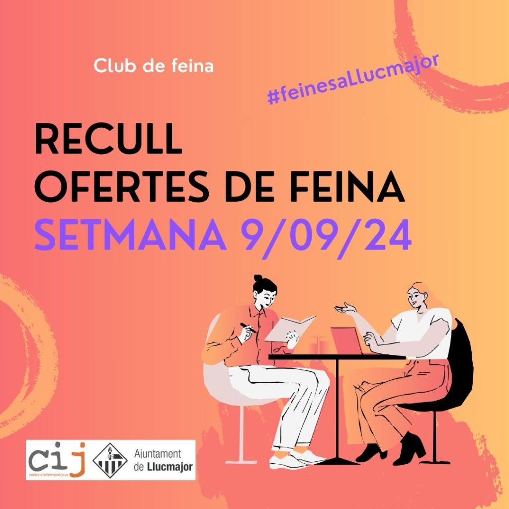Club de feina setmana 9 de setembre Publicat el 11 Setembre 2024 per #enClauJove Ajuntament de Llucmajor #feinesallucmajor Comparteix això: Feu clic per compartir a X (S'obre en una nova finestra) X Feu clic per compartir al Facebook (S'obre en una nova finestra) Facebook M'agrada S'està carregant... Relacionats