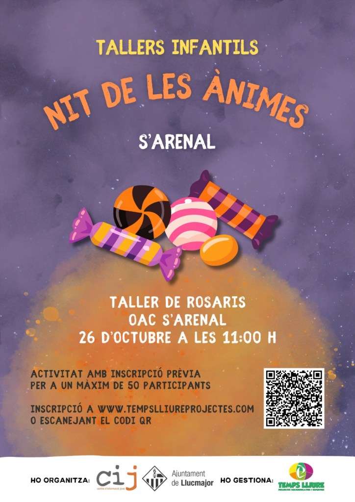 𝕊’𝔸ℝ𝔼ℕ𝔸𝕃 – S’ha de reservar plaça al QR o a https://tempslliureprojectes.com/event/taller-infantil-de-la-nit-de-les-animes-s-arenal-2024-10-26-234/register