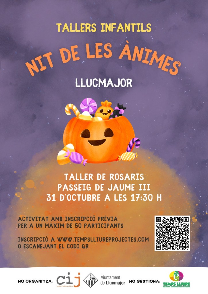 𝕃𝕃𝕌ℂ𝕄𝔸𝕁𝕆ℝ S’ha de reservar plaça al QR o a https://tempslliureprojectes.com/event/taller-infantil-de-la-nit-de-les-animes-llucmajor-2024-10-31-235/register
