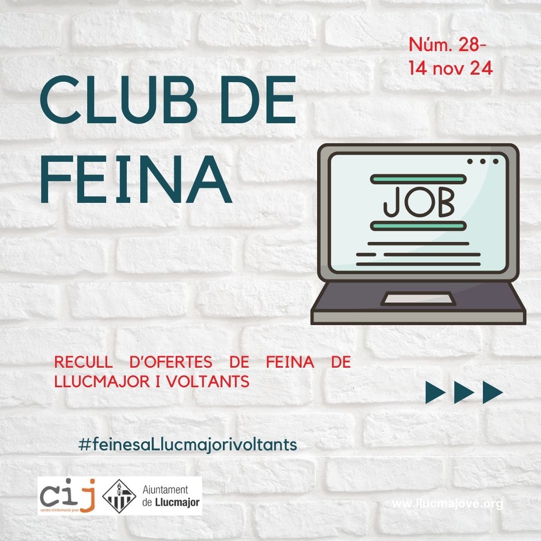 Club de feina núm. 28 14/11/24 Publicat el 14 Novembre 2024 per #enClauJove Ajuntament de Llucmajor #feinesaLlucmajorivoltants Clica damunt l’oferta per accedir a l’enllaç! Comparteix això: Feu clic per compartir a X (S'obre en una nova finestra) X Feu clic per compartir al Facebook (S'obre en una nova finestra) Facebook M'agrada S'està carregant... Relacionats