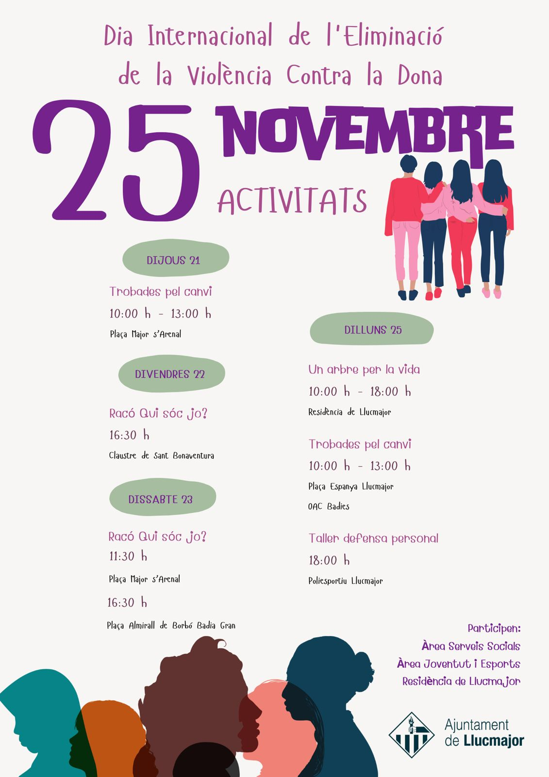 Activitats #25N Publicat el 18 Novembre 2024 per #enClauJove Ajuntament de Llucmajor En motiu del Dia internacional de l’eliminació de la violència contra la dona des de l’Ajuntament s’han organitzat una sèrie d’activitats. Aquí en teniu tots els detalls. Comparteix això: Feu clic per compartir a X (S'obre en una nova finestra) X Feu clic per compartir al Facebook (S'obre en una nova finestra) Facebook M'agrada S'està carregant... Relacionats