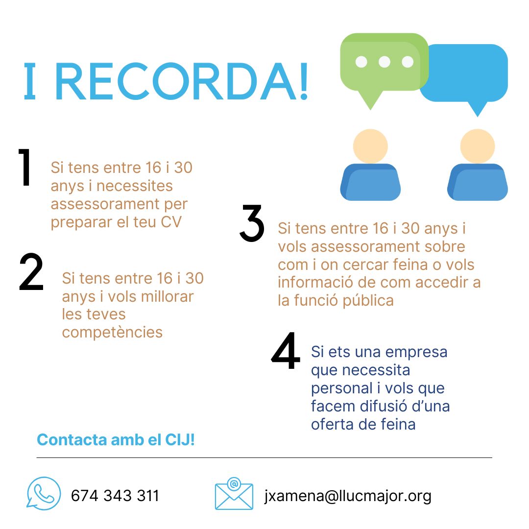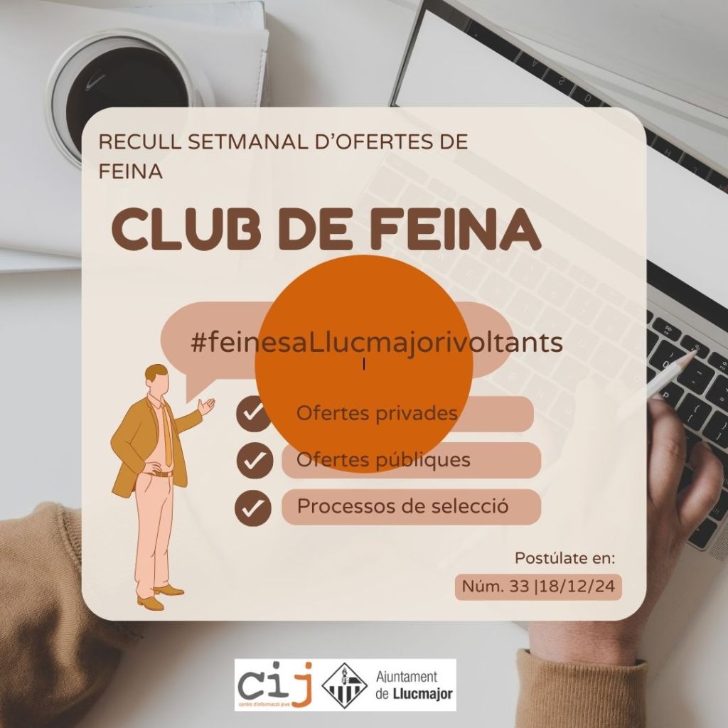 Club de feina num. 33 | 18/12/24 Publicat el 18 Desembre 2024 per #enClauJove Ajuntament de Llucmajor Recull setmana d’ofertes de feina 📲📲 Clica damunt la imatge i et dirigirà a la pàgina de l’oferta de feina, amb més informació i opció d’inscripció Comparteix això: Feu clic per compartir a X (S'obre en una nova finestra) X Feu clic per compartir al Facebook (S'obre en una nova finestra) Facebook M'agrada S'està carregant... Relacionats