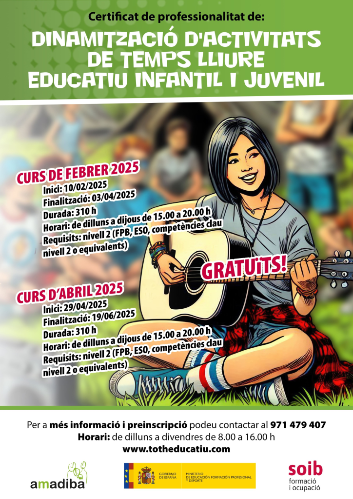 Certificat de professionalitat: dinamització d’activitats de lleure educatiu Imatge Publicat el 13 gener 2025 per #enClauJove Ajuntament de Llucmajor Comparteix això: Feu clic per compartir a X (S'obre en una nova finestra) X Feu clic per compartir al Facebook (S'obre en una nova finestra) Facebook M'agrada S'està carregant... Relacionats