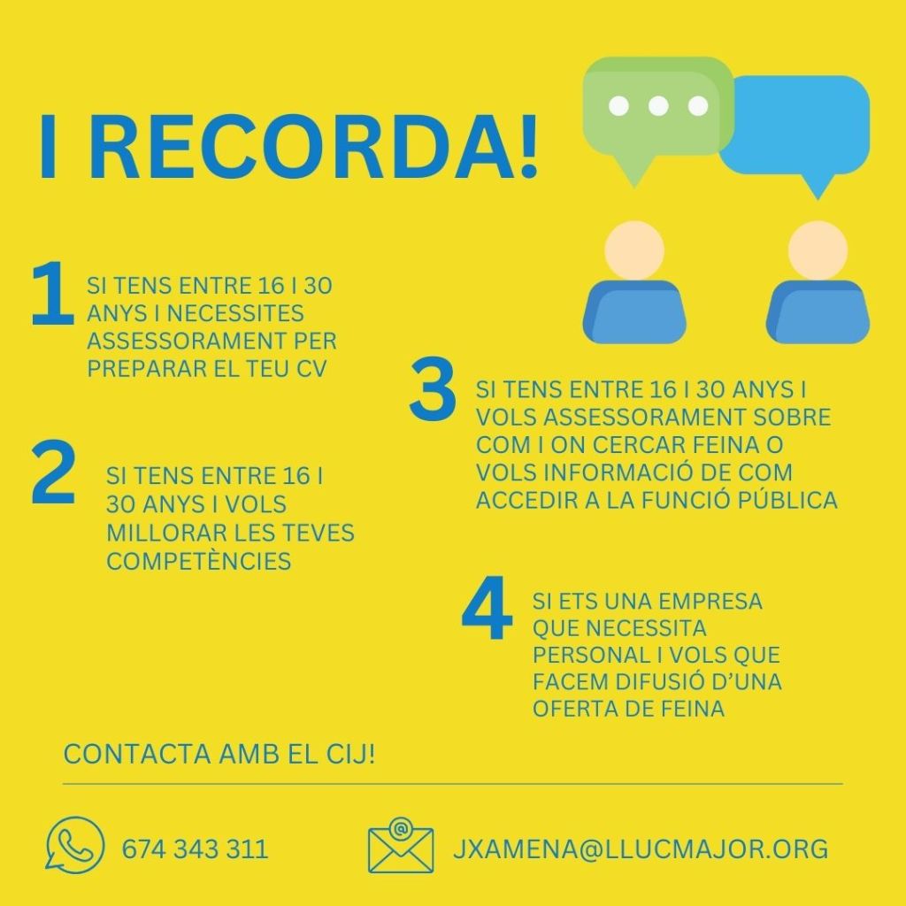 Club de feina núm. 4-2025 Publicat el 30 gener 2025 per #enClauJove Ajuntament de Llucmajor ##OportunitatsDeFeina #feinesaLlucmajor #feinesaLlucmajoriVoltants 📲📲 Clica damunt les ofertes i et dirigirà a l’enllaç amb informació i opció d’incripció o envia el CV a l’adreça indicada! Comparteix això: Feu clic per compartir a X (S'obre en una nova finestra) X Feu clic per compartir al Facebook (S'obre en una nova finestra) Facebook M'agrada S'està carregant... Relacionats
