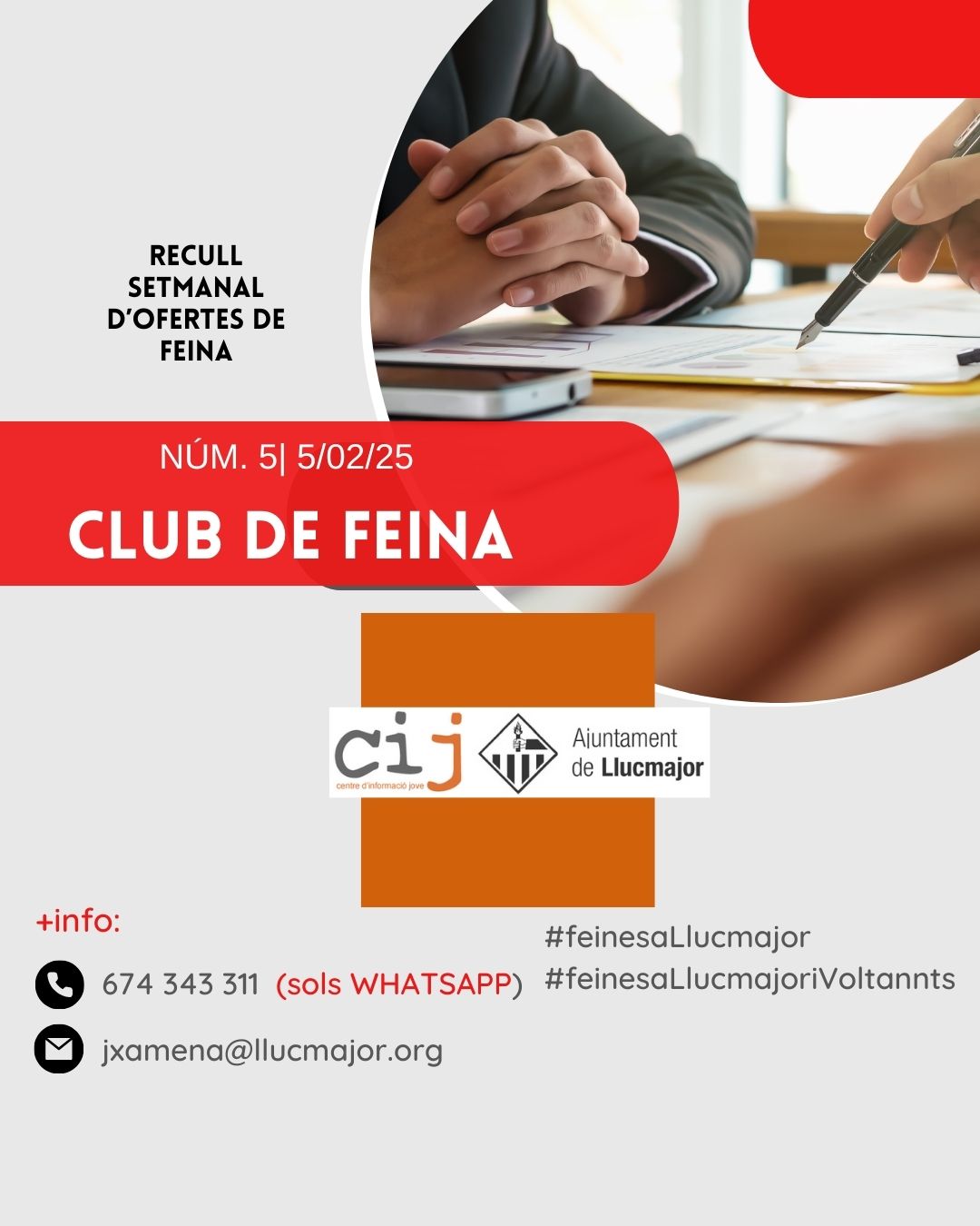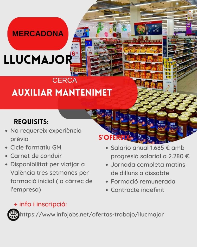 Club de feina núm. 5 | 6/02/2025 Publicat el 6 febrer 2025 per #enClauJove Ajuntament de Llucmajor #FeinaJove #OportunitatsDeFeina#feinesaLlucmajoriVoltants Comparteix això: Feu clic per compartir a X (S'obre en una nova finestra) X Feu clic per compartir al Facebook (S'obre en una nova finestra) Facebook M'agrada S'està carregant... Relacionats