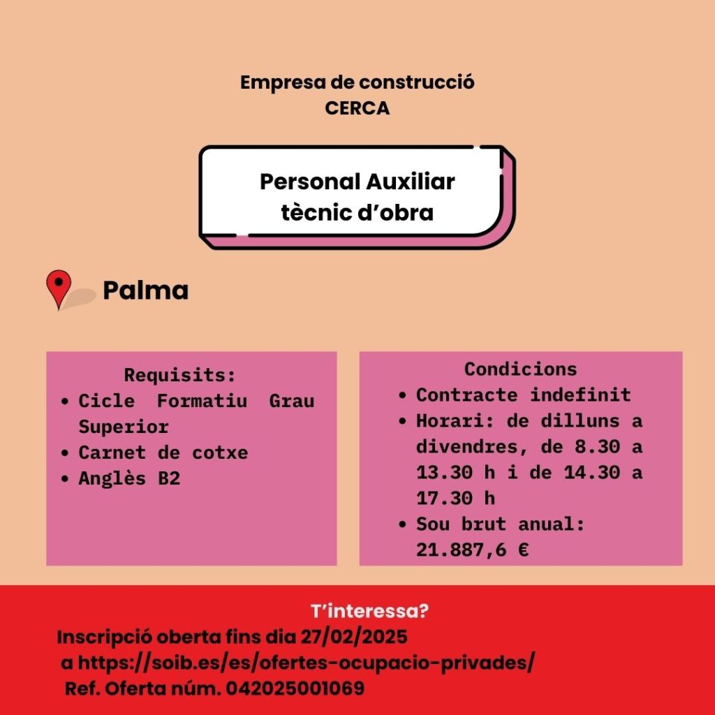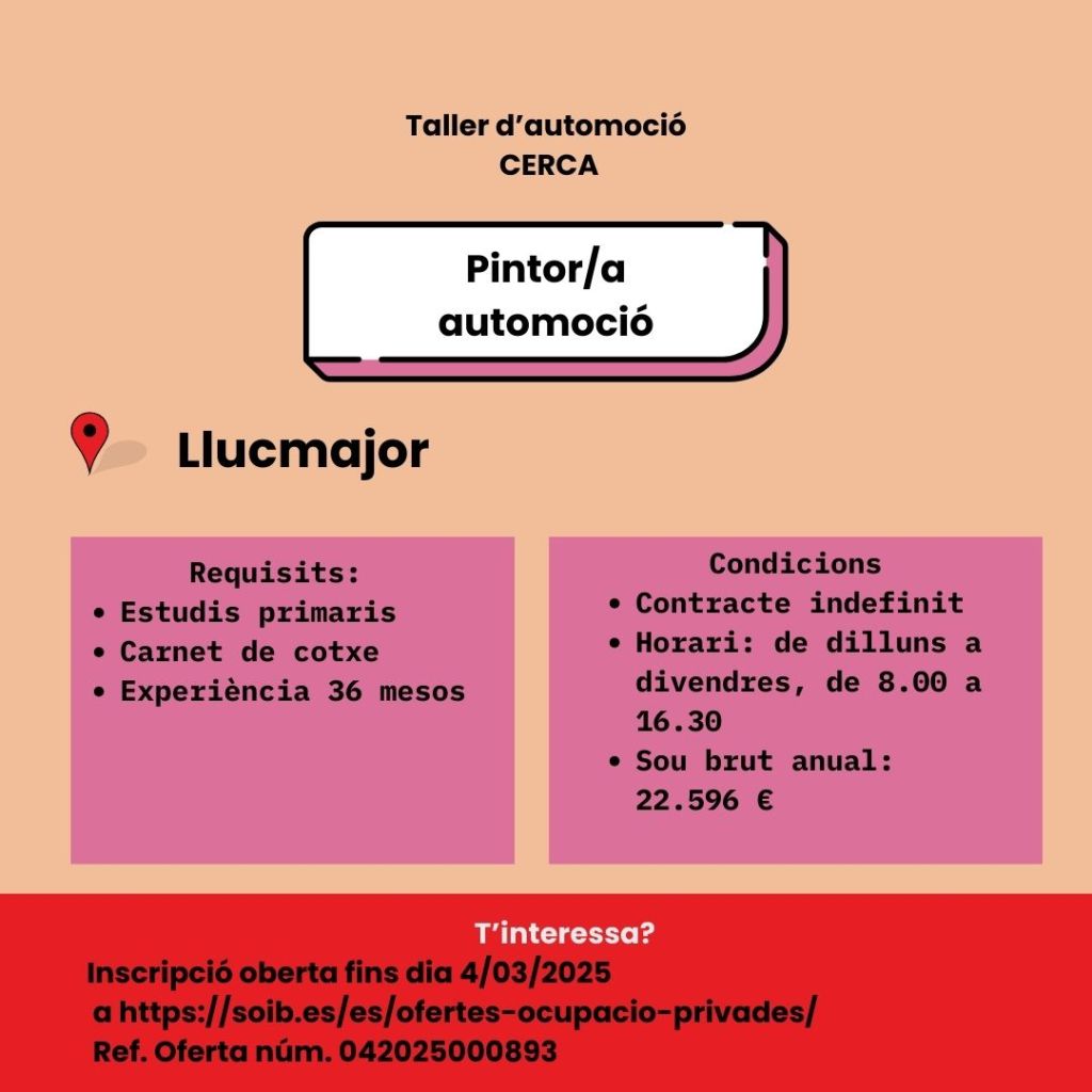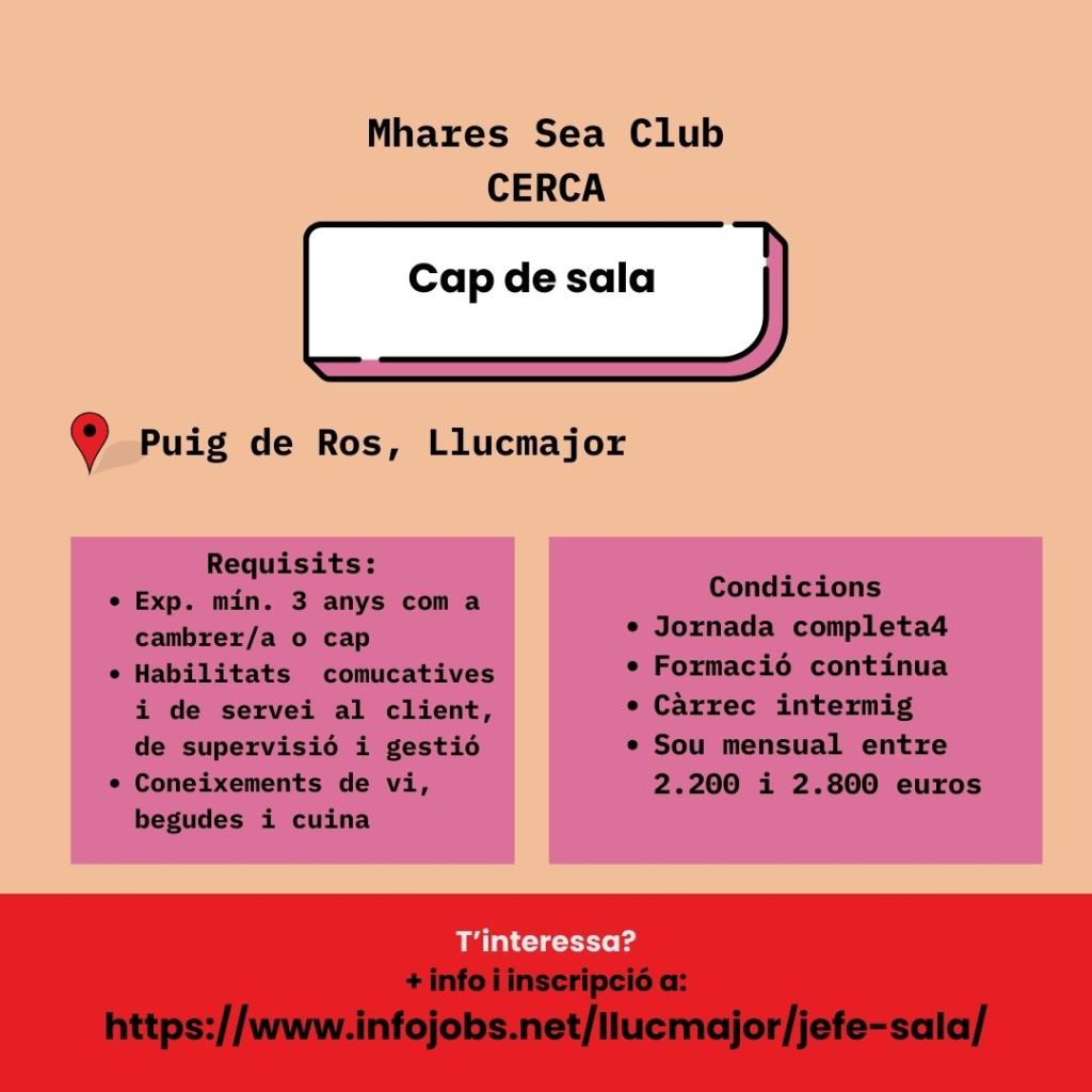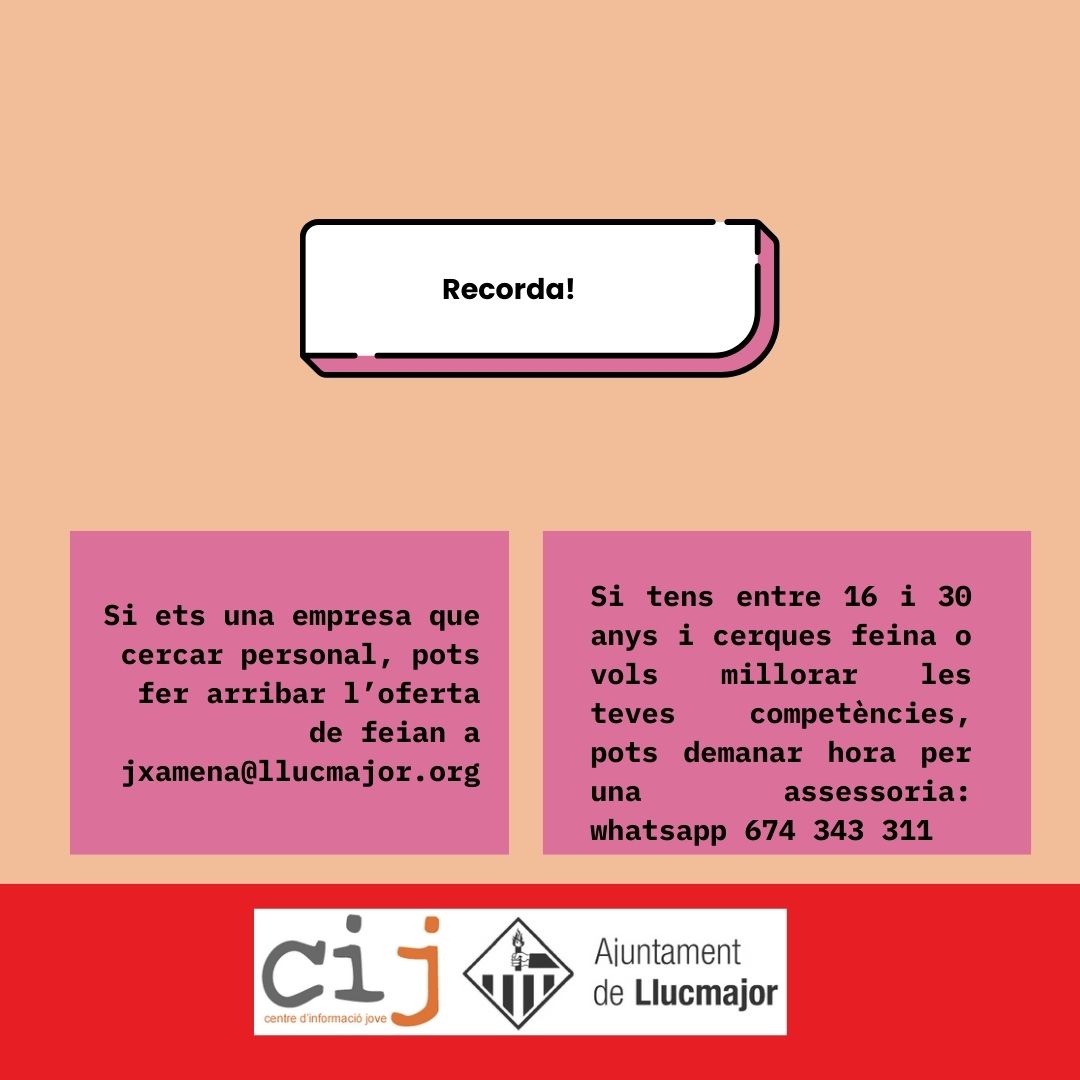 ✅ Ets una empresa que cerca personal? 👉 Pots fer arribar l’oferta de feina a jxamena@llucmajor.org o contactar per whatsapp al 674 343 311
