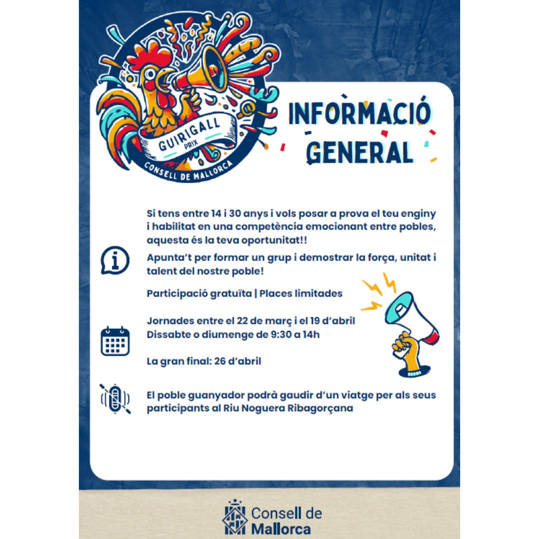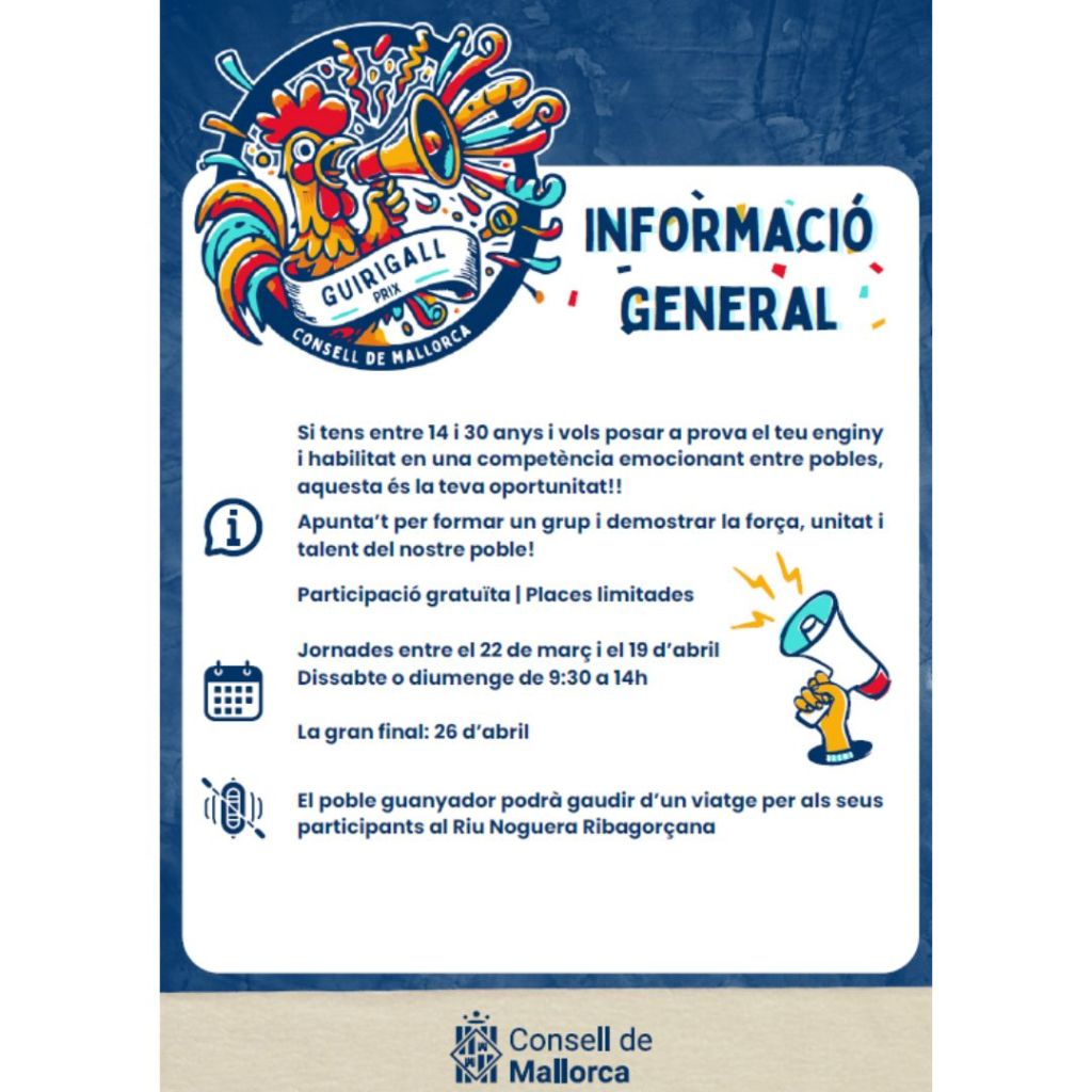 Si tens entre 14 a 30 anys, i vols representar al nostre poble al Guirigall Prix, inscriu-te!