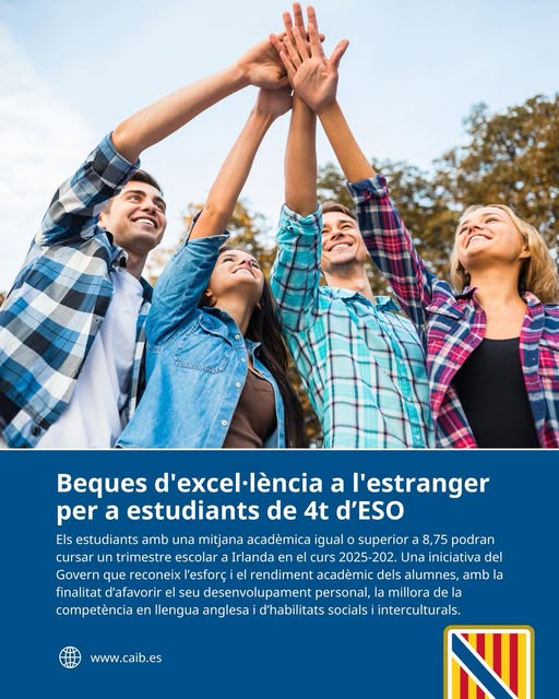 Programa de Beques d’Excel·lència a l’estranger per a estudiants de 4t d’ESO. Una iniciativa que reconeix l’esforç i el rendiment acadèmic dels alumnes de les Illes Balears.