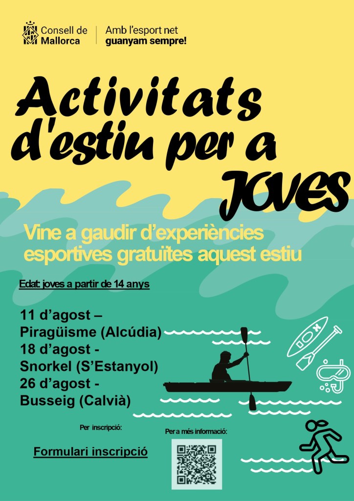 Oferta d’activitats esportives d’estiu per a joves a aprtir de 14 anys 💧💧💧