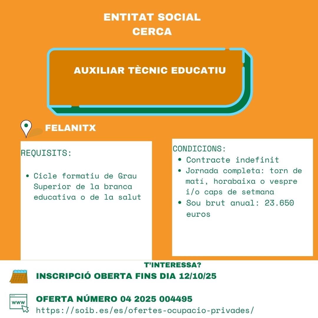 Consulta l’oferta aquí – Núm. oferta: 04 2025 004495