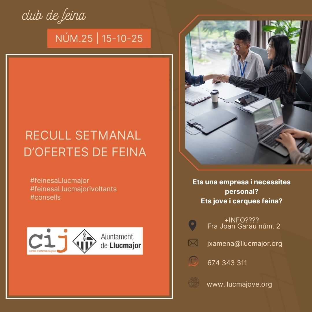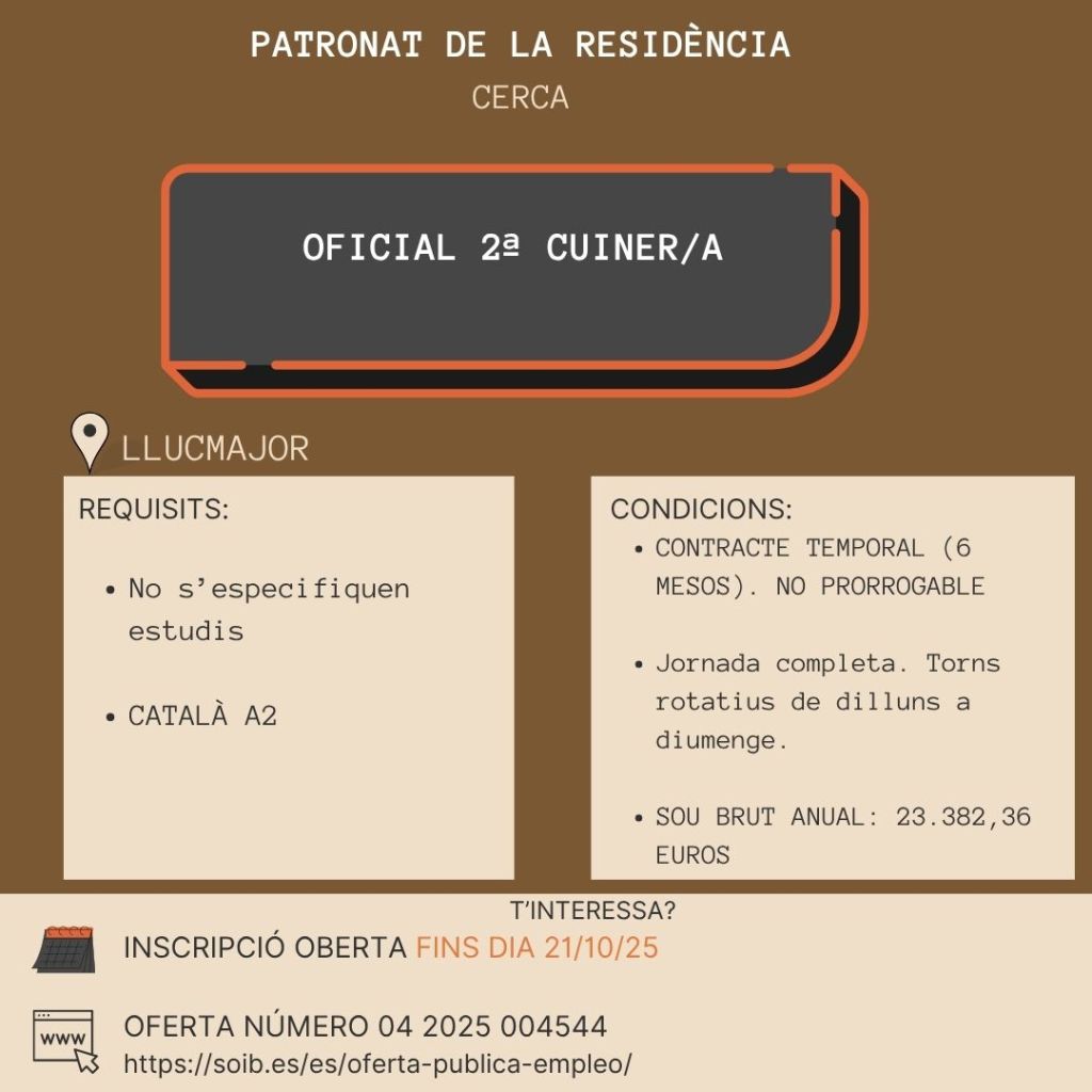 📌 Recull setmanal d’ofertes amb llocs com dissenyador/a gràfic o cuiner/a a Llucmajor.