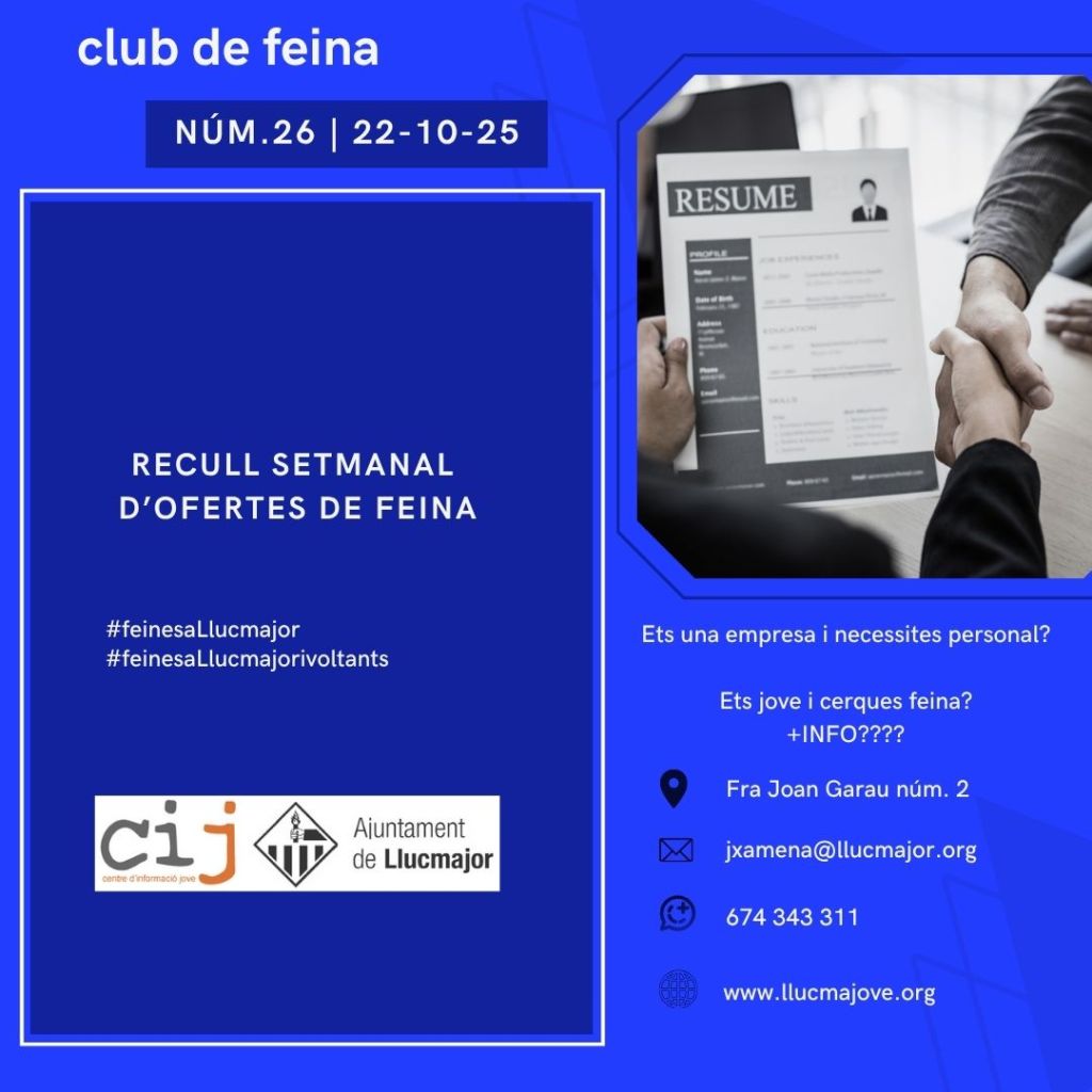 Vols fer un pas endavant en la teva carrera? Al Club de Feina Llucmajove tenim oportunitats que poden ser per a tu.