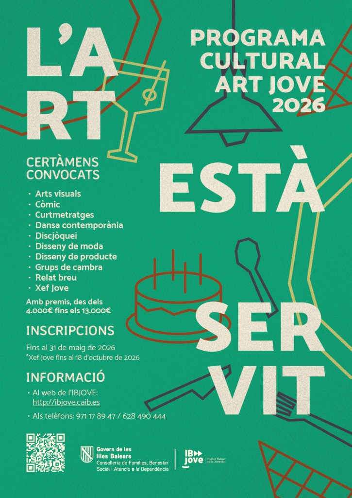 L’edició 2026 del Programa Cultural Art Jove arriba amb el lema “L’art està servit”, que defineix la nova línia gràfica de la convocatòria.