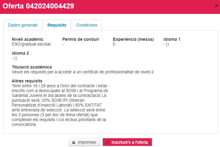 Tenen prioritat joves entre 16 i 29 anys i persones majors de 45 anys, així com desocupats/des de llarga durada.