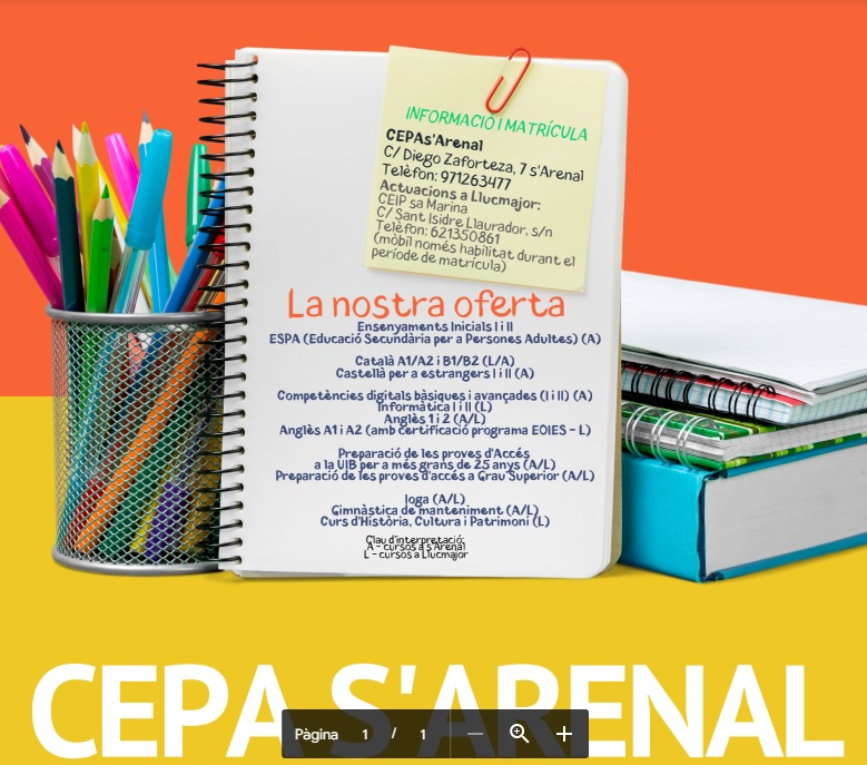 Informació cita prèvia: https://sites.google.com/cepaarenal.cat/webcentre/atenci%C3%B3-al-p%C3%BAblic?authuser=0
