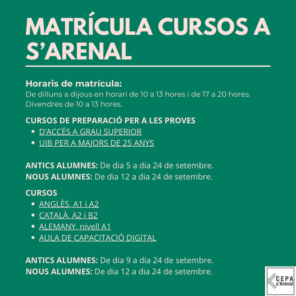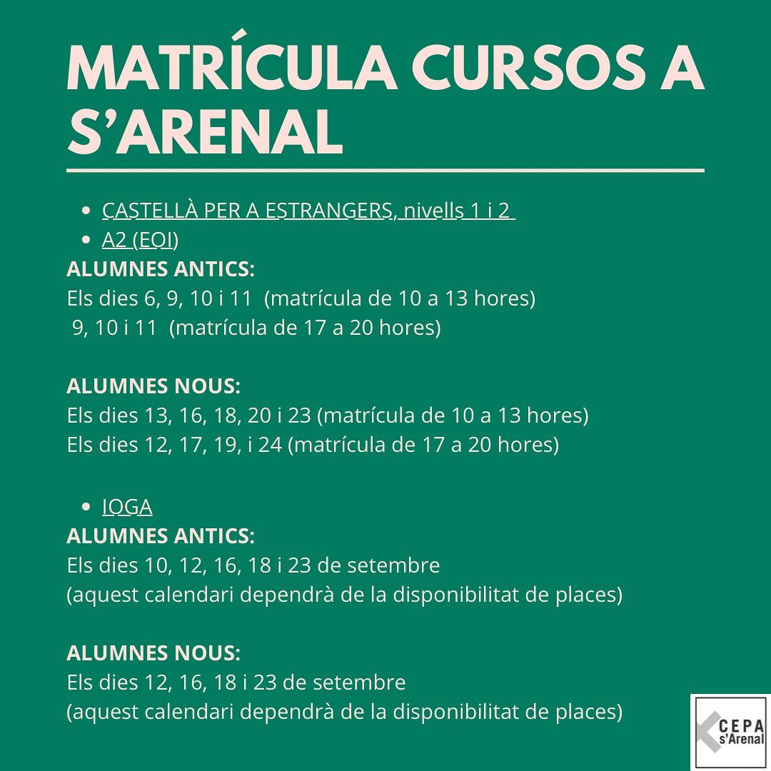 Informació cita prèvia: https://sites.google.com/cepaarenal.cat/webcentre/atenci%C3%B3-al-p%C3%BAblic?authuser=0