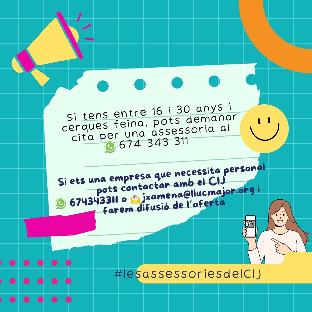 I recorda que al CIJ s’ofereix un servei d’assessorament gratuït per a la recerca de feina per a joves de 16 a 30 anys.
